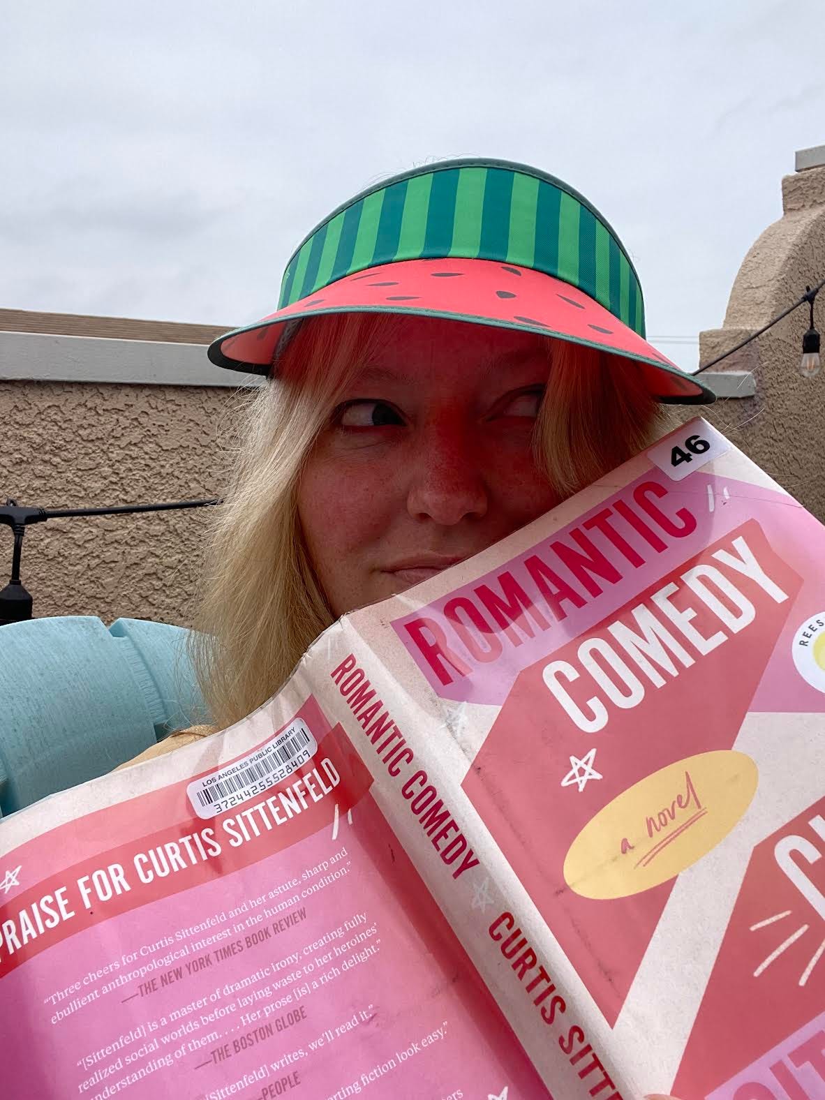 That’s it! I tried to find a picture of me reading but here’s the best I got - me on the roof in my unhinged bird lady watermelon visor. Enjoy.